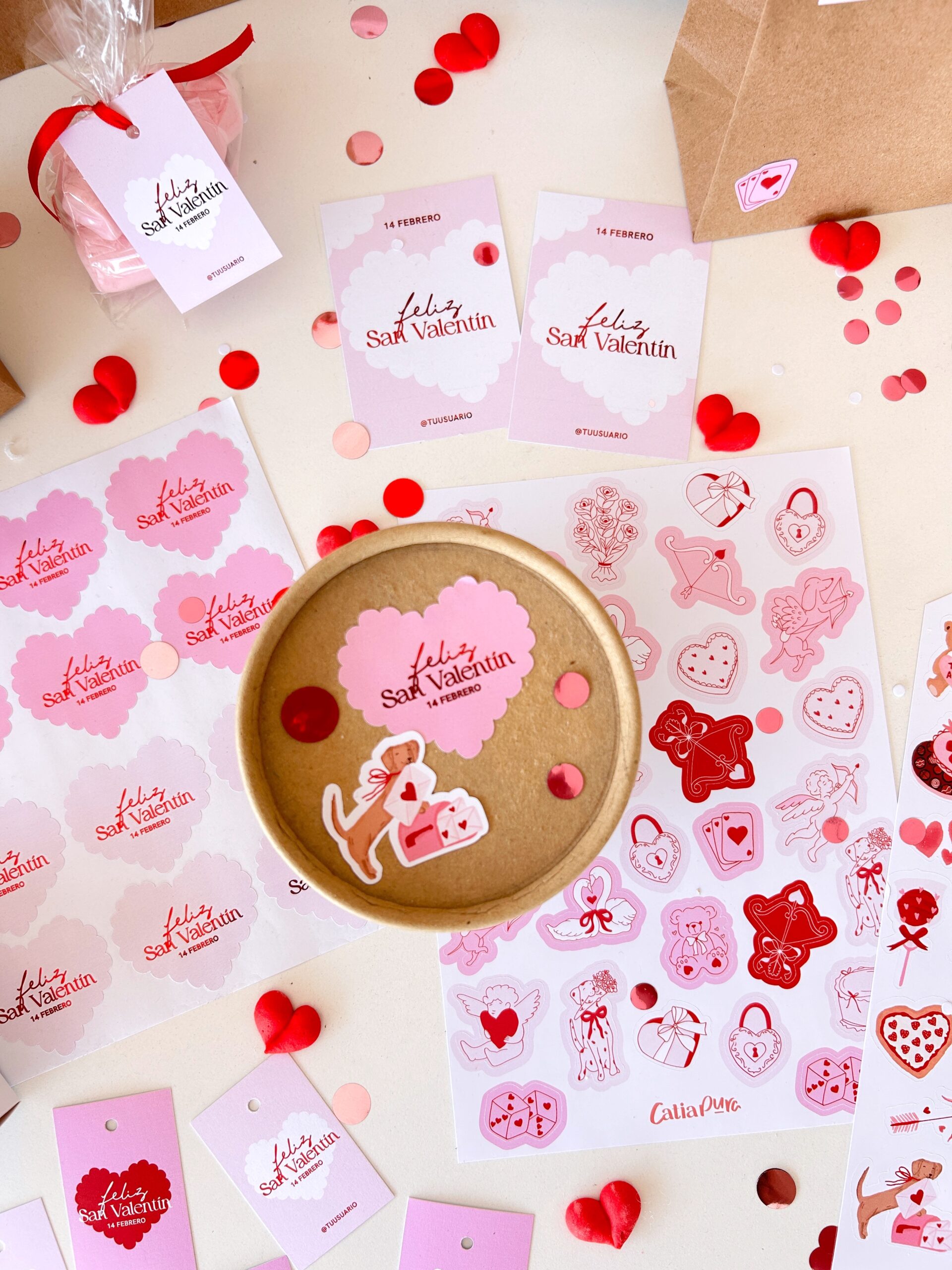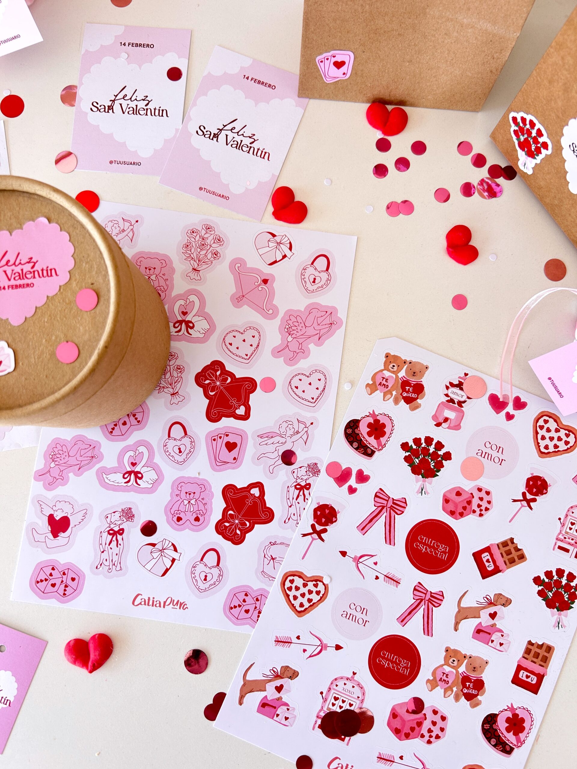 Lo ideal es que armes sets con tarjetas, tags y otros stickers de la colección San Valentín.