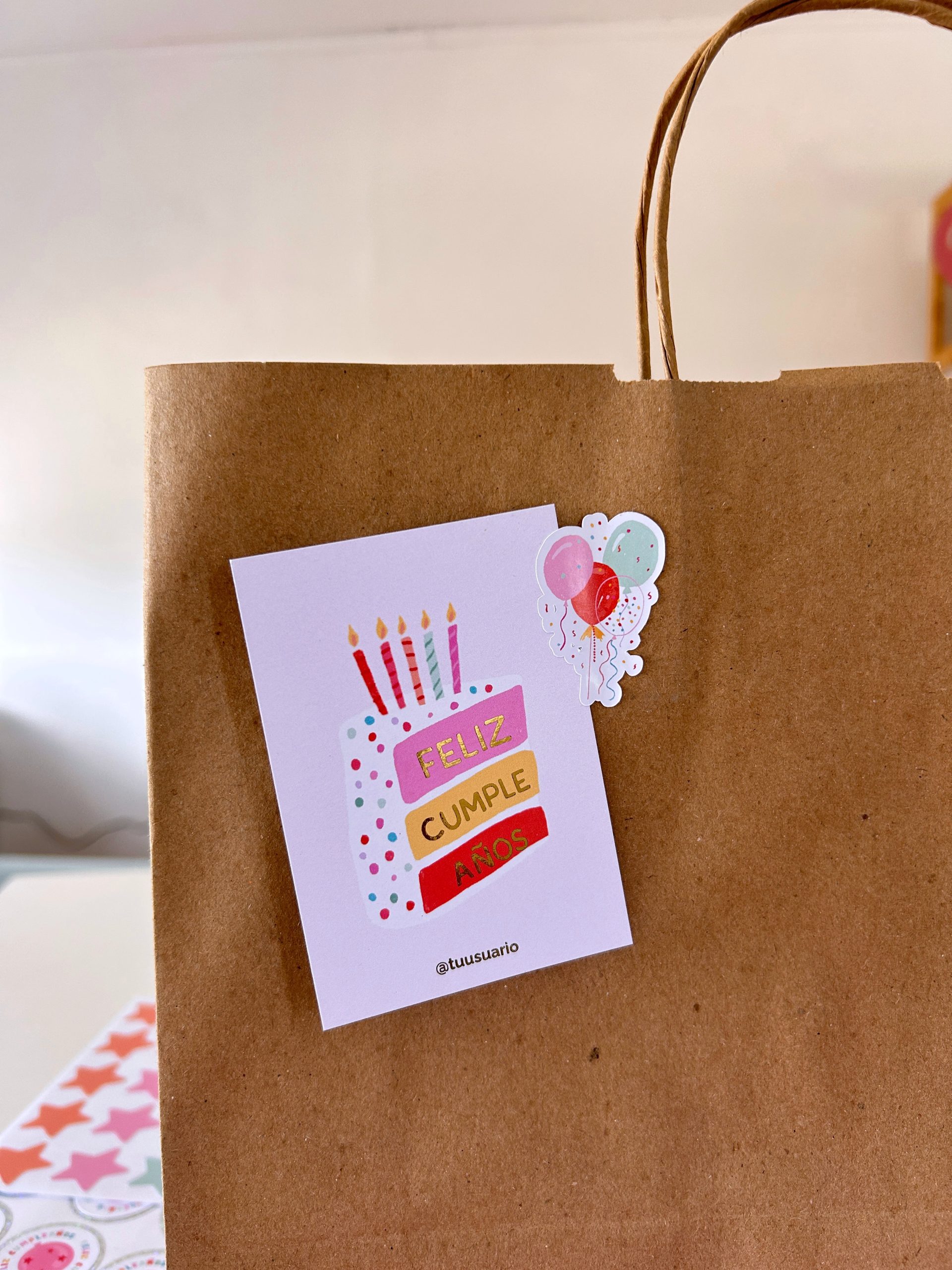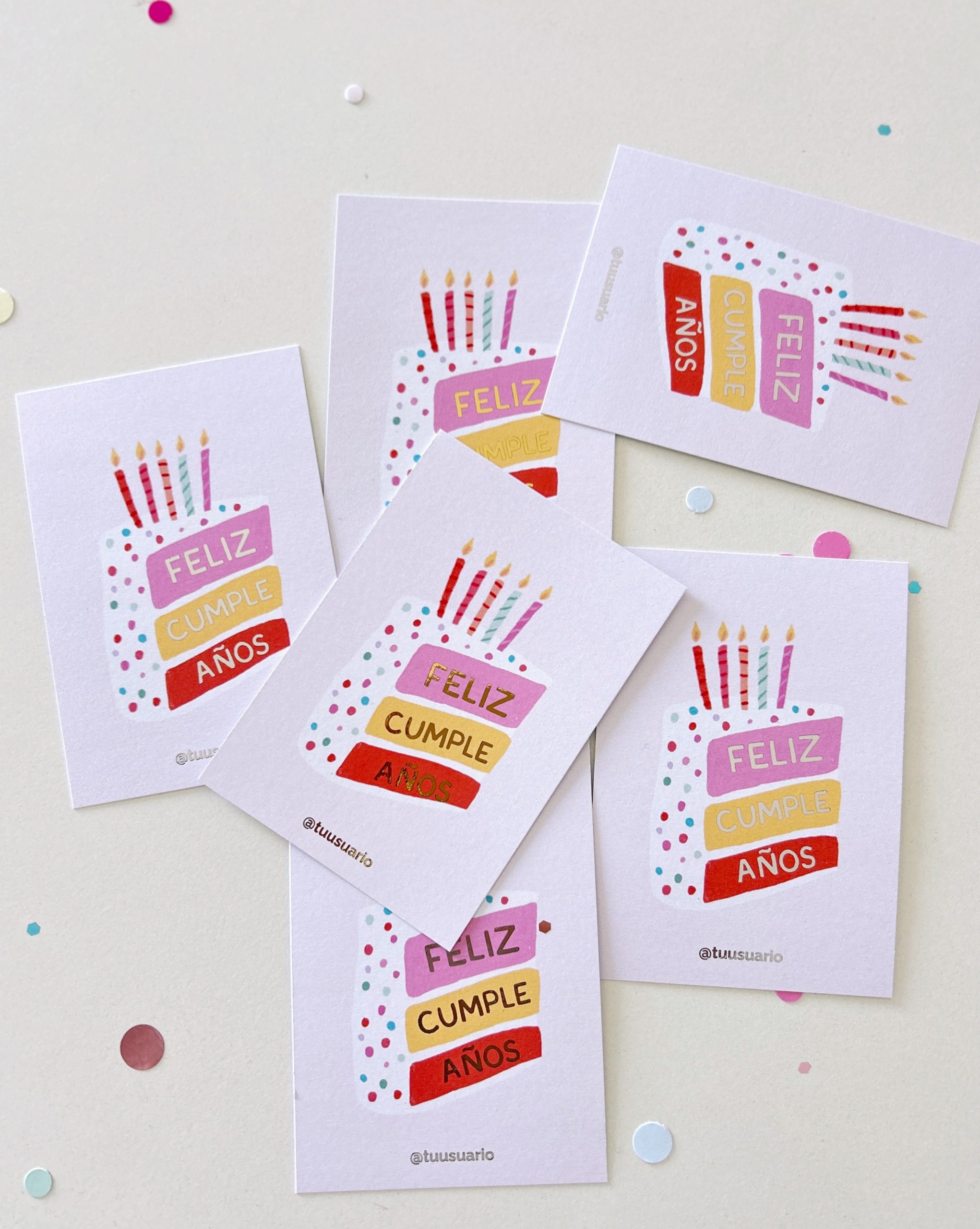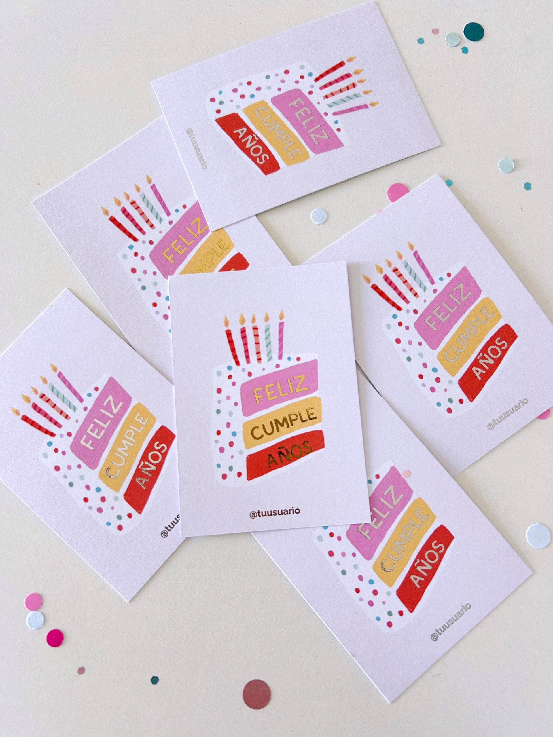 25 tarjetas temática CUMPLE con el @ de tu marca